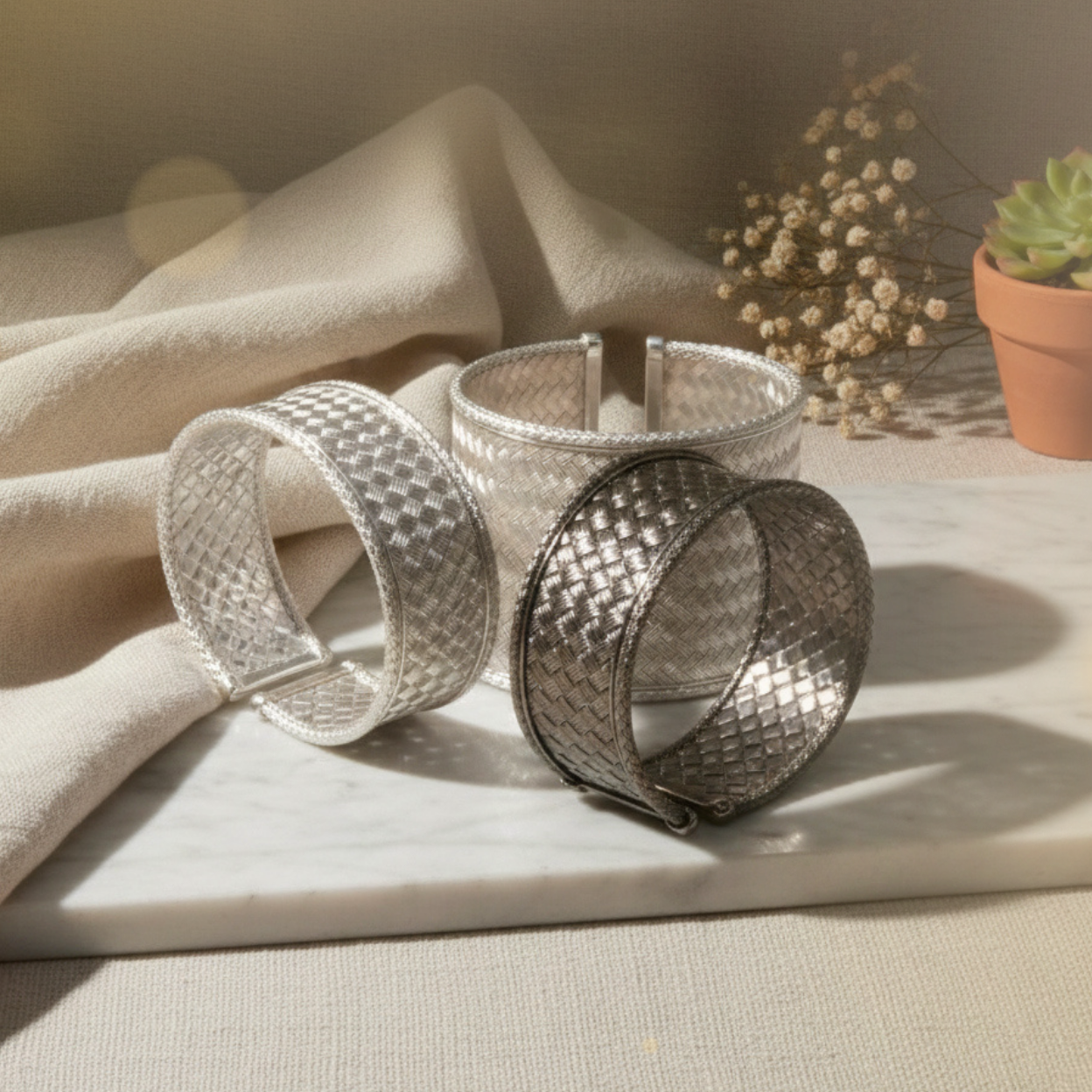 Briella Collection | Textured Sterling Silver Bangle Bracelet